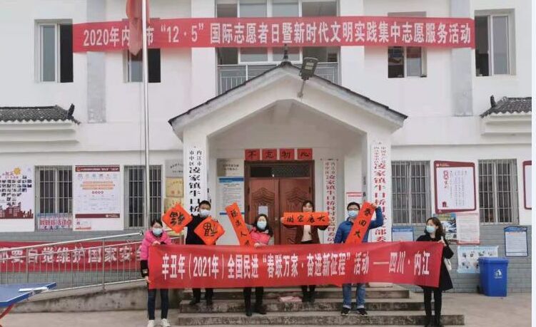2021年2月9日(腊月二十八),民进内江市委市中区总支“春联万家活动”在凌家镇牛口桥村举行,活动按照农村地区疫情防控要求,由民进书画家各自分工完成春联和福字后,再由市中区总支民进会员逐家逐户送春联上门。会员们跟镇村干部一起,帮助村民申领天府健康通,宣传农村地区疫情防控知识,当天共送出春联100余幅,福字200多张。