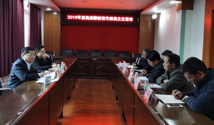 为深入贯彻民进中央和民进省委“不忘合作初心,继续携手前进”主题教育活动,进一步加强领导班子建设,1月9日,民进攀枝花市委召开2019年度领导班子专题民主生活会。民进市委主委周治端,副主委朱发彬、汪沛川、郝刚、杨颖出席会议。秘书长王波列席会议。市委统战部党派科科长郭建受邀到会。