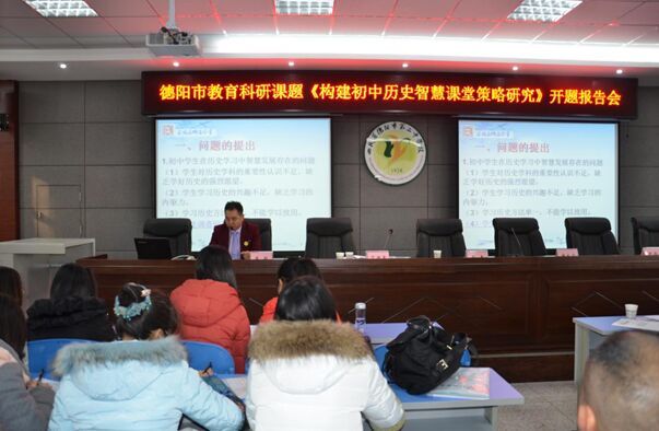 12月17日,德阳市教育科研课题《构建初中历史智慧课堂策略研究》开题报告会在德阳二中召开。民进德阳二中支部委员、中学历史高级教师、旌阳区历史名师工作室领衔教师梁毅作了《构建初中历史智慧课堂策略研究》的开题报告。在深入推进新课程改革背景下,梁毅带领他的团队致力于智慧课堂策略研究,创造性的提出了初中历史智慧课堂“415智慧梯”教学范式,并通过教学实践取得了一定成效,具有一定的推广价值,受到应邀参会的市教科所、区教育局、区教科所领导及专家的充分肯定。