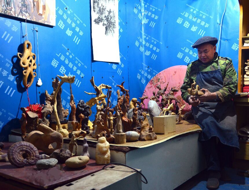 他迷上根雕在穷乡僻壤引来非议。有人说:“一日三餐都没吃饱,还有精力做无事包筋。”有人说:“在山上捡朽木烂柴,不如喝茶打纸牌,非要受那份苦罪,关键是卖不到几个钱。”有人说:“一个乡下泥腿子,也要闯根雕艺术殿堂,简直是白日做梦!”妻子也经常埋怨他不务正业,还将他千辛万苦从大山上挖出的树疙篼,统统塞进灶膛烧了。后来,妻子看他左说右说始终听不进去,爱根雕像吃错药似的,也从反对到干脆不管,最后还主动给他当起助手,家务事全承包,让他全身心投入到根雕艺术中。