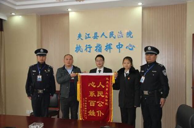 12月30日,民进夹江县支部主委、夹江县法院执行庭执行员何鹏超在执行11件劳动争议中,为9名农民工和2名员工把拖欠工资全部执行到位,为感谢执行员何鹏超在该批案件解决过程中付出的艰辛努力,11名执行申请人委托其律师向该会员送上了“人民公仆 心系百姓”的锦旗一面。