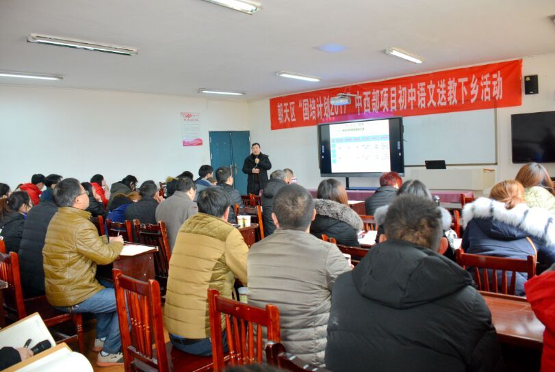 12月12日,民进广元中学支部主委、广元名师李凤耀同广元中学校长助理、高2017级管委会主任汪贵平一行9人赴朝天区羊木中学送教下乡朝天区“国培计划2017”中西部项目。内江师院郭教授、朝天区教科局教研室主任李正生、人事股股长尹万福、羊木中学校长谢万勇、朝天区各初中校语文、数学、外语等学科代表共60余人参加了本次项目活动。活动分教师献课、集中评课、专题讲座三个环节进行。