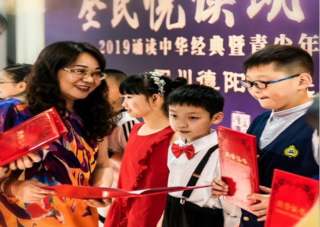 会上,入选德阳市本次总决赛活动的国学朗读爱好者近百人,分中小学组和成人组,进行了精彩的诵读和激烈的比赛,比赛结束,万晓英作为嘉宾,为参赛者颁奖。