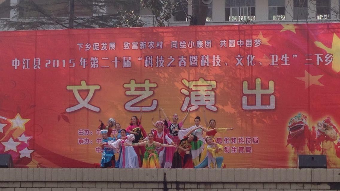 由德阳中江县委、县政府主办的2015年科技、文化、卫生“三下乡”活动于3月13日在广福镇中心学校拉开帷幕。本次活动为群众带来了科技、卫生、文化等知识和成果展示。同时,中江支部会员黄莉、刘槿等人作为演员表演了丰富多彩的文艺节目,受到当地群众的欢迎和喜爱。据了解,观看文艺演出的人员接近2000人。