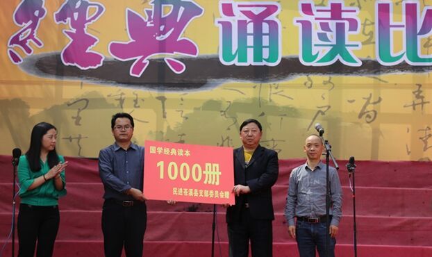 为进一步做好青少年思想引导工作,积极传播社会正能量,培育和践行社会主义核心价值观。4月29日下午,民进苍溪支部在县城郊中学开展国学进校园活动,并向该校捐赠了1000册图书。活动进一步丰富了校园文化精神内涵,广大师生受益匪浅。