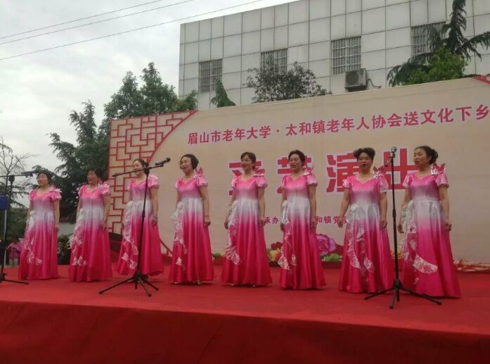 4月28日,民进东坡区总支老年支部会员马丽明同志参加眉山市老年大学?太和镇老年人协会送文化下乡活动,为村民群众们送去了精彩的歌舞表演,受到群众们的热烈欢迎。展现了民进会员热心公益、甘于奉献的积极作风。