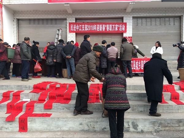 为贯彻落实民进四川省委、民进德阳市委丰富群众文化生活,树立新风气,展现新面貌,打造文化正能量的相关部署,切实营造欢乐、喜庆的新春气氛,弘扬中华民族迎新春、贴春联的优良传统,2月9日,由民进中江支部主办的“春联万家”活动,在中江县清河乡举行。
