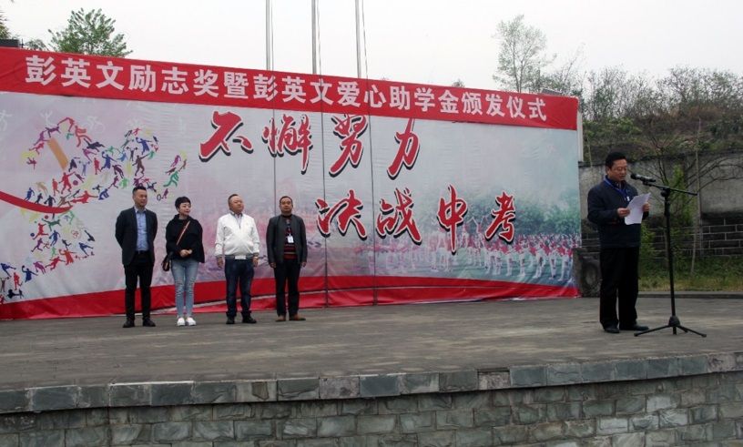 上午九时,彭英文、罗玲一行来到青白江区清泉中学参加爱心捐资助学活动。彭英文为学校16名同学颁发了励志奖学金和爱心助学金,鼓励成绩优秀的学生和困难家庭的学子更好的成长成才。捐赠仪式结束后,彭英文还与青白江区教育系统有关同志研究了每学期资助计划等工作。