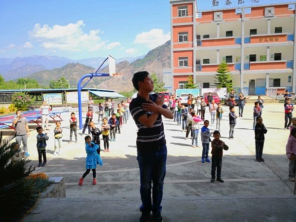 在学校教室里,老师精心准备的英语《whose dog is it?》、语文《人物动作描写的“五大法宝”》、数学《数学广角》和《语言表达》等示范课得到孩子们的全部关注和热情响应;在音乐教学中,展示的是一场艺术培训“盛会”,捐赠的竖笛让孩子们惊喜不已、爱不释手,孩子们在老师的带领下逐渐掌握其中吹奏诀窍。在操场旁的树荫里,文艺支部主委李天志正在一字一句地教孩子们演唱为他们量身制作的具有红宝乡苗族特色的汉、苗双语《苗家娃娃唱欢歌》,从孩子们稚嫩的嗓音中飘扬出的是对本民族文化的热爱和传承;旁边的鼓号队也在老师的悉心指导下有条不紊地练习着。在操场的正中间,老师们把认真编排的富含苗族舞蹈元素的课间操一个动作一个动作地教授给孩子们,孩子们烈日下红红的小脸上洋溢着幸福和快乐……