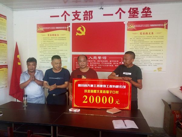 6月19日,四川省天德土木建筑工程有限公司董事长朱建国,前往大英县蓬莱镇壕子口村捐款20000元,支持该村办好农民夜校。市政协副主席、民进遂宁市委主委欧斯云参加了捐赠仪式。