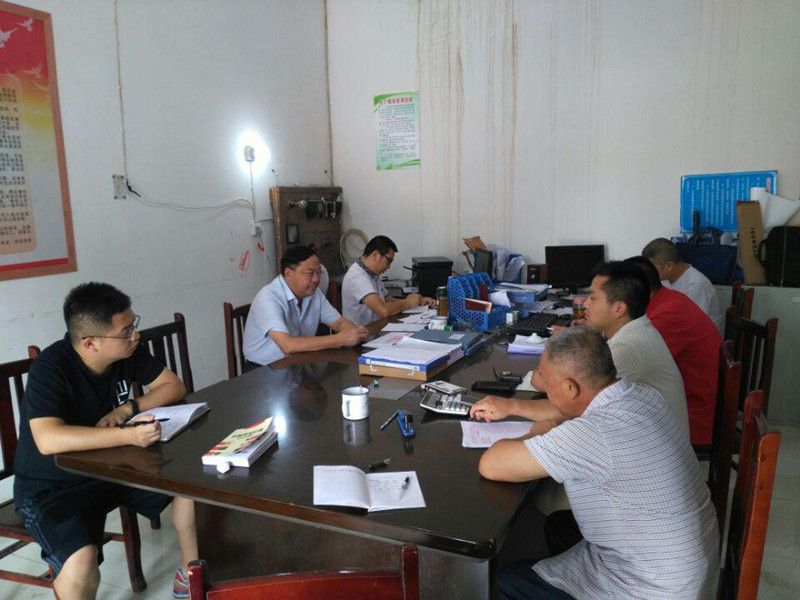 彭哲志主委听取村两委及帮扶部门工作情况汇报。