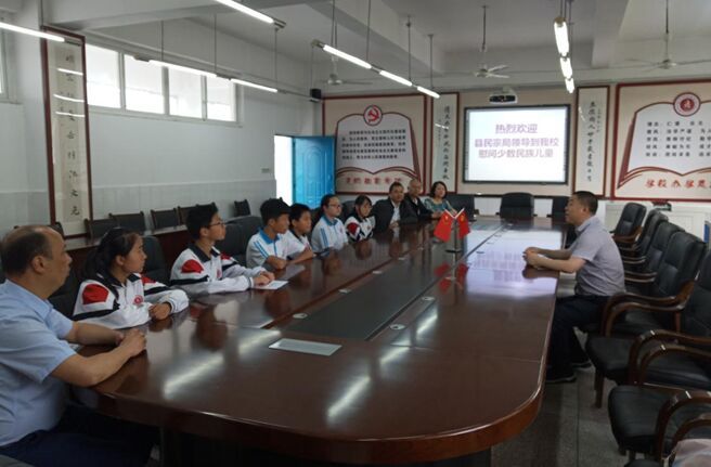 5月31日上午,民进蓬溪总支会员刘艳和县统战部、县民宗局等单位负责人一道,慰问蓬溪中学初一年级少数民族儿童。