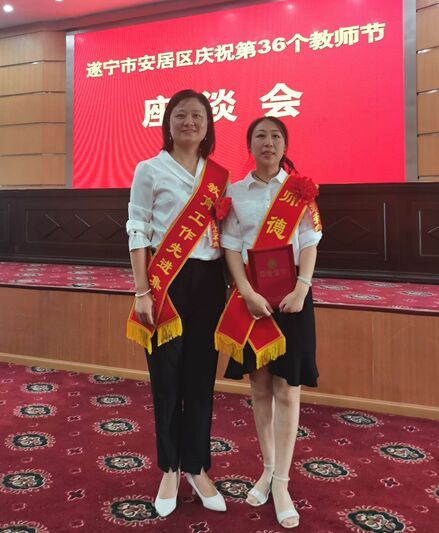 2020年9月10日,安居区庆祝第三十六个教师节座谈会上,民进安居总支陈丽君、杜华两位会员获区委区政府表彰。两位会员表示:在今后的工作中,一定要严格按照习近平总书记对参政党建设提出的 “四新”“三好”总要求,以饱满的学习热情,认真学习、开阔眼界、更新思想、汲取新知,在教育教学和参政议政中“双岗建功”,为民进添彩。