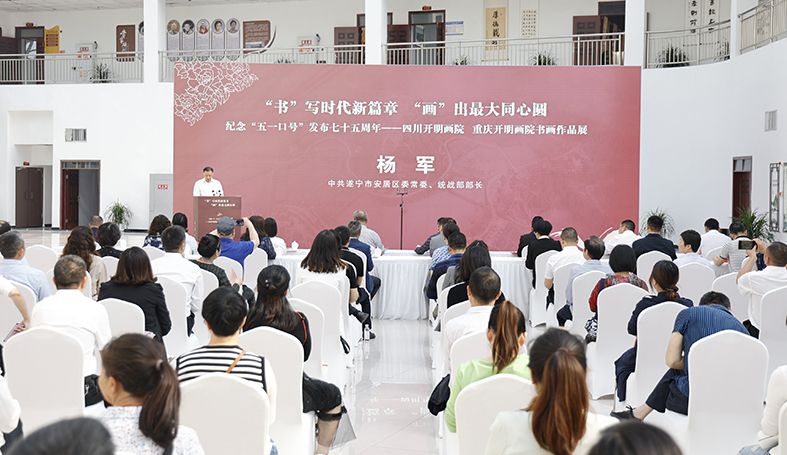 4月15日,“书”写时代新篇章“画”出最大同心圆,纪念“五一口号”发布七十五周年,四川开明画院、重庆开明画院书画作品展开展仪式在遂宁市安居区美术馆隆重举行。本次画展得到了民进中央开明画院的大力支持,由民进四川省委会、民进重庆市委会主办,民进遂宁市委会、遂宁市安居区人民政府承办,四川开明画院、重庆开明画院、成都开明画院、遂宁开明画院等4所画院协办。民进中央社会服务部部长刘文胜,民进中央开明画院副院长、中国检验检疫科学研究院标本馆馆长封俊虎,民进重庆市委会专职副主委罗挺,民进四川省委会副主委、遂宁市委会主委、副市长吴新春,区委副书记、区长杨文彬出席开展仪式,仪式由安居区委常委、统战部长杨军主持。