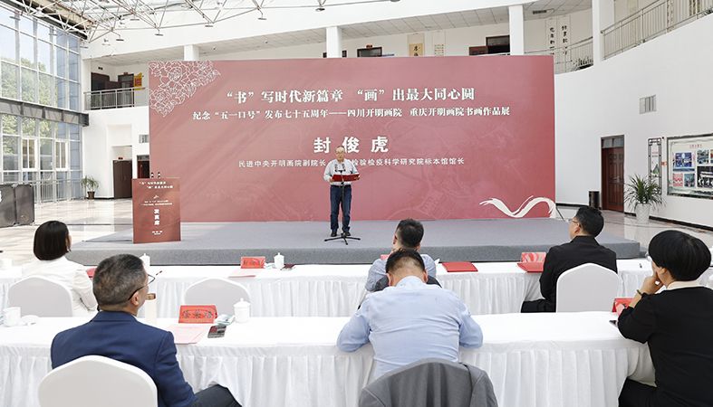 封俊虎说,开明画院作为民进的重要社会服务平台之一,是团结和联系民进书画艺术家的纽带,是为书画家们提供创作、交流、研讨和联谊的平台。本次书画作品展在纪念“五一口号”发布七十五周年之际举办意义重大,既是助推川渝两地文化艺术交流合作和成渝地区双城经济圈建设的具体举措,也是宣传中国新型政党制度优势,讲好多党合作故事的重要内容。希望川渝民进艺术家们继续坚持以人民为中心的创作导向,把艺术理想融入实现中国式现代化大业之中,为广大人民群众创作出更多弘扬主旋律、激发正能量、反映时代呼声、振奋民族精神、陶冶高尚情操的优秀作品。