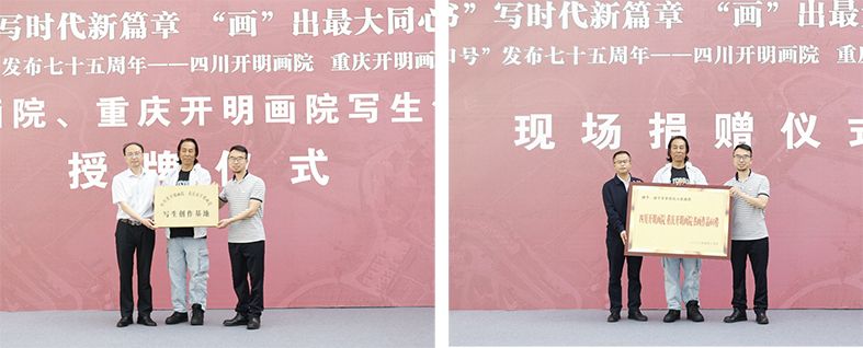 会上,民进中央开明画院副院长、四川开明画院院长、民进西华大学副主委杨晓亮,重庆开明画院副院长兼秘书长巫大军共同授予安居区“四川开明画院重庆开明画院写生创作基地”牌子,并进行了美术作品捐赠。