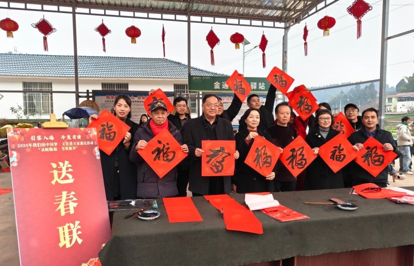 1月17日,民进大英总支贯彻民进中央活动部署,组织书法家们深入大英县玉峰镇斗笠村,开展“春联万家·大道同行”暨迎新春以购助扶活动。县人大常委会副主任、民进大英总支主委钟英出席活动。