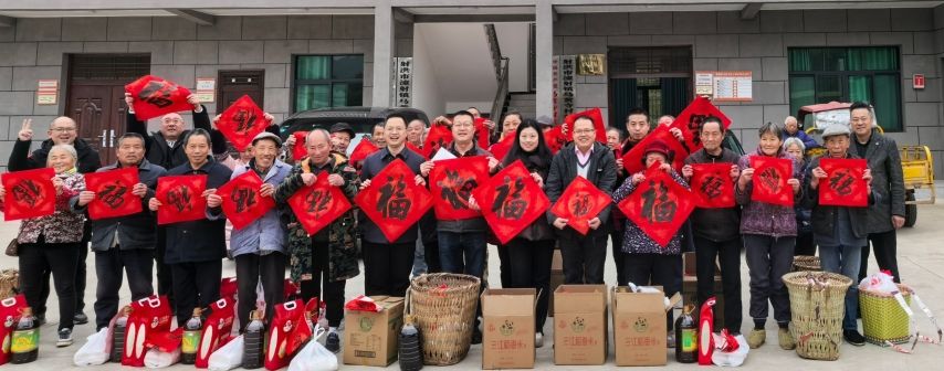 在马黄寺村党群服务中心,现场发放了遂宁开明画院书画家为村民们手写的春联、福字,并对30名群众开展了新春慰问,为他们送上了米、面、油等生活物资。嘱咐他们保重身体,保持乐观心态,度过一个幸福快乐的春节。