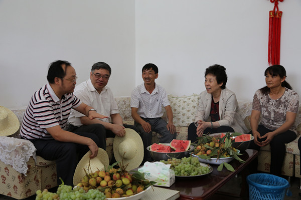 2014年5月26日至31日,民进中央调研组就“建立流域水生态环境保护长效机制,促进区域生态文明建设”在四川成都、雅安和攀枝花三市进行了为期5天的调研。图为调研组一行与移民交流生产生活情况。