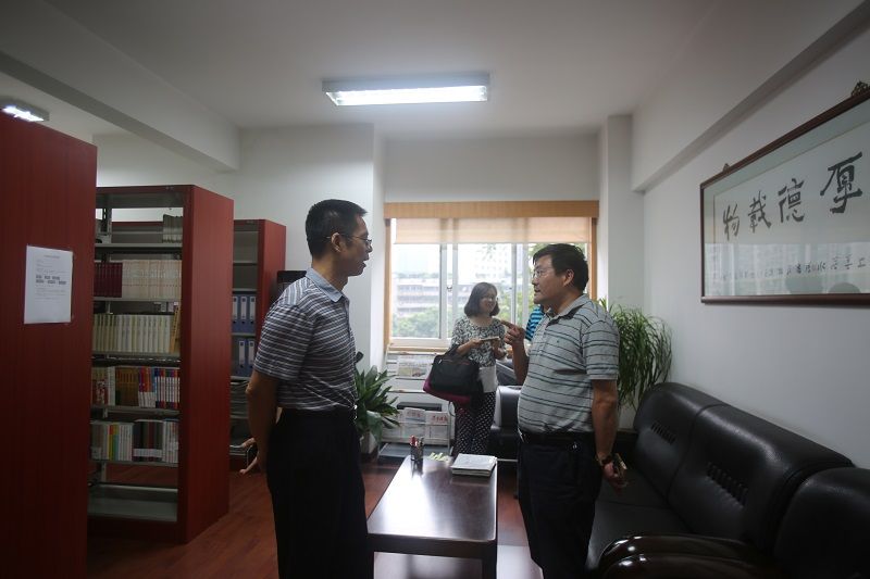 座谈会后,石树梅等调研组成员走访了民进省委会机关,参观了省委会机关档案室及省图书馆民进分馆。