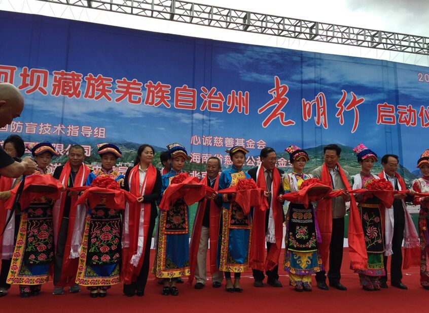 启动仪式上,四川省人民政府副秘书长何旅章、全国防盲技术指导组副组长徐国兴、中国工程院院士、“光明行”发起人、海航集团非执行董事韩德民、阿坝州人民政府副州长杨绍林等先后致辞。在剪彩和集体合影之后,赵川荣和嘉宾们前往医院举行了为患者揭纱布仪式。