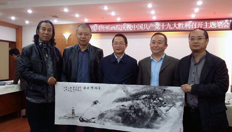 秘书长万刚受杨晓亮院长委托代表院务会做了工作报告。会议由开明画院的副院长刘代明主持。下午,艺术家们举行了“庆祝中国共产党十九大胜利召开主题笔会”。