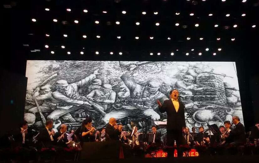 8月26日晚,泸州市江阳艺术宫座无虚席,泸州市纪念中国人民抗日战争胜利70周年暨世界反法西斯战争胜利70周年交响音乐会在这里隆重举行。本场音乐会由中共泸州市委宣传部、四川音乐家协会、泸州市文体新广局、泸州市文学艺术界联合会共同主办,希望通过纪念活动,铭记历史、缅怀先烈、珍视和平、开创未来。川师大支部会员、四川师范大学音乐学院艺术中心主任伍亮吉受邀参加本场音乐会,并在音乐会上演唱了一首著名的抗战歌曲《松花江上》。