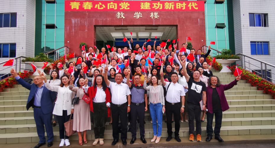活动最后,在龚亚虹、匡亚新两位女高音歌唱家的领唱下,全体人员合唱《我和我的祖国》。大家挥舞着红旗,放声歌唱,对国家的热爱,对组织的热爱,在每个人的心中涤荡。