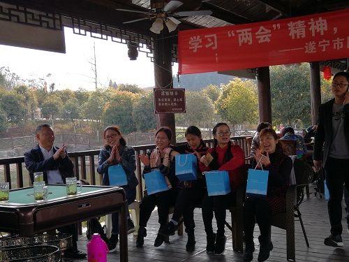2018年3月11日,遂宁市民主促进会遂宁中学总支全体会员在龙亭生态园开展了基层组织活动,活动特邀了民进遂宁市委主委、遂宁市政协副主席欧斯云,遂宁中学原副校长、学校党政代表刘蒲林出席。活动以学习“两会”精神为主题,同时对总支女会员进行了表彰和慰问。