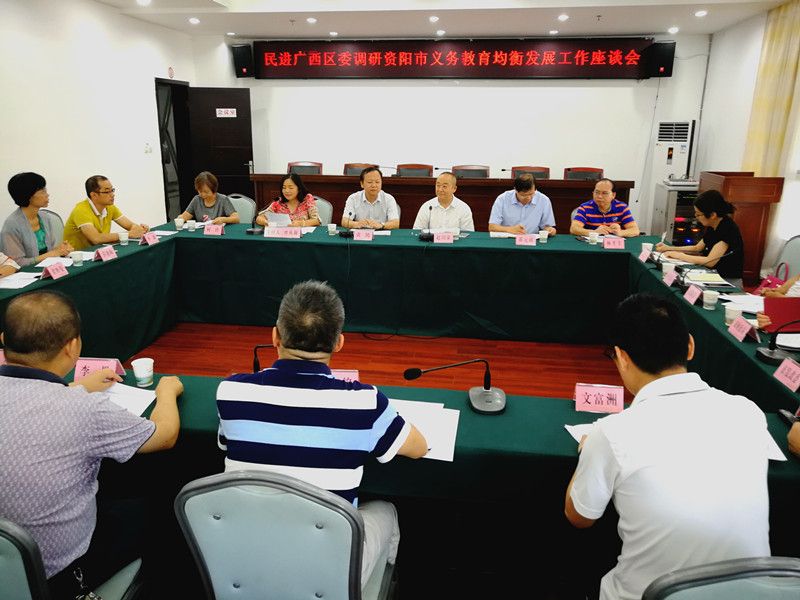 7月24日,由广西壮族自治区政协委员,钦州学院副校长、教授,民进广西区委副主委黄鹄带队的民进广西区委调研组赶赴资阳,调研该市义务教育均衡发展。民进四川省委驻会副主委赵川荣、资阳市政府副市长周齐铭陪同调研。